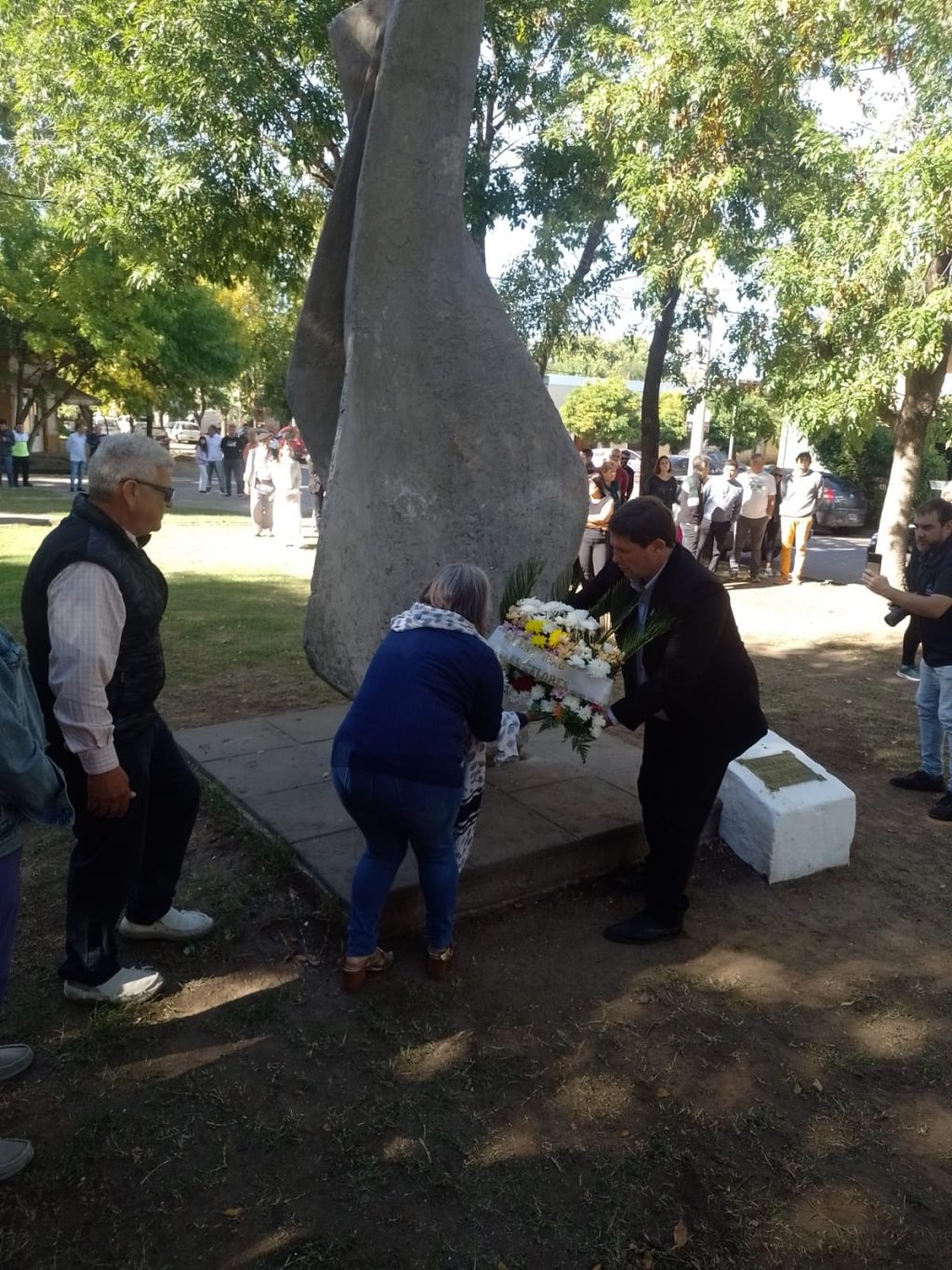 Se cumplen este martes 2 de abril 42 años del Desembarco de las Fuerzas Armadas Argentinas en las Islas Malvinas . En nuestro ciudad el acto conmemorativo tuvo lugar esta mañana en Plaza Mitre junto al monumento que recuerda a nuestros soldados (ver video en nuestro Facebook). Luego del izamiento de la bandera nacional hicieron uso de la palabra la docente Lorena Sájara quien recordó a los ex combatientes. «Hablar de Malvinas es hablar de nuestro territorio. Así lo hacemos los docentes con nuestros alumnos durante todo el año cuando invitamos a nuestros veteranos de guerra a contarnos sus historias en las aulas. Hoy rendimos homenaje a todos los ex combatientes que estuvieron en nuestras islas», leyó la maestra. Por su parte, el ex combatiente Gustavo Mondini expresó que «cuando me eligieron para hablar hoy sentí un gran orgullo. Con el tiempo aprendí que todos quieren escuchar la historia. Si la guerra me hizo tanto mal por qué amo tanto a Malvinas, dirán ustedes. Odio a los que declararon una guerra sin pensar pero al mismo tiempo siento amor por una tierra maravillosa». Finalmente, el payador Mario Cabrera improvisó sobre la fecha en cuestión. Luego se entonó el Himno a Malvinas. Previamente se colocó una ofrenda floral y se izó la bandera argentina y la bandera de ex combatientes en la Plazoleta «Soldado de Malvinas», ubicada en el Barrio «Arturo Illia» (foto).