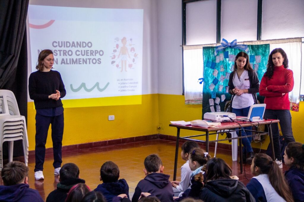 CHARLA DE NUTRICIÓN EN LA ESCUELA 18 Parte del equipo de Nutrición de la Secretaría de Salud Pública visitó en esta ocasión la Escuela Primaria N° 18 en el contexto de la Semana de la Educación Sexual Integral (ESI) y dentro de la temática sobre cómo cuidar el cuerpo, en este caso, desde la alimentación saludable. Durante la jornada se trabajaron los grupos de alimentos, plato saludable y Ley de Etiquetado. Todo esto fue abordado desde actividades didácticas. El objetivo de la Secretaría de Salud es poner al alcance de las niñeces herramientas para que crezcan con hábitos saludables.