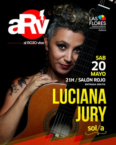 LUCIANA JURY EN LA PRÓXIMA FECHA DEL CICLO “AL ROJO VIVO” Luciana Jury se estará presentando el sábado 20 de mayo en Al Rojo Vivo, el ciclo ideado por Osvaldo “Helado” Ruiz, con el auspicio de la Secretaría de Cultura. La artista llega por primera vez con su canto a Las Flores y estará presentando “SOL/A”, un recital que propone un espacio de encuentro íntimo y, como ella misma resaltó, “litúrgico entre ustedes y yo». La cita es en el Salón Rojo del Palacio Municipal a partir de las 21 horas, con entrada libre y gratuita. Luciana editó cuatro discos en solitario y dos en formato dueto: uno con Gabo Ferro y otro con Carlos Moscardini. Su último lanzamiento fue el sencillo de tres valses denominado “Trilogía de un adiós” y estrenó un video homónimo. “Abrazo”, su cuarto disco solista, fue galardonado con el Premio Gardel 2021 en la categoría Mejor Álbum Artista De Folklore. En 2022 participó de una serie de homenajes a su tío, el cineasta y músico Leonardo Favio, al cumplirse una década de su desaparición física. Realizó giras por Argentina y también realizó dos viajes a Europa; en Segura, España participó como jurado del certamen “Canciones que nadie debería cantar”.