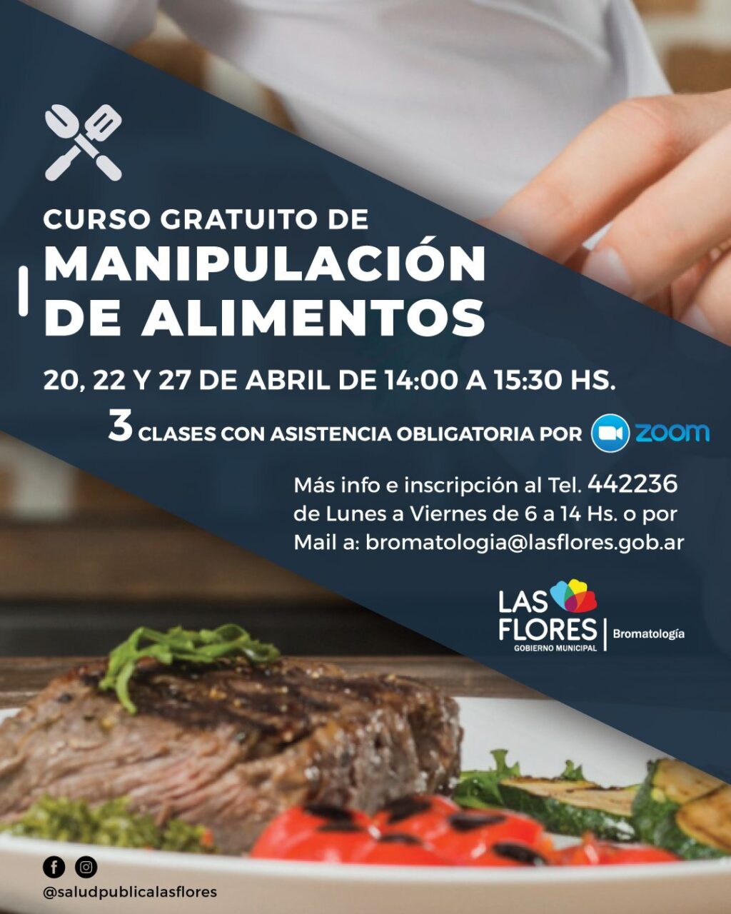Según lo establece el Art. 21 del Código Alimentario Argentino, el mencionado curso es obligatorio para toda persona que realice actividades por la cual esté o pudiera estar en contacto con alimentos, en establecimientos donde se elaboren, fraccionen, almacenen, transporten y/o comercialicen alimentos o sus materias primas. El objetivo del mismo es dar a conocer los conceptos y principios generales de higiene a lo largo de la cadena alimentaria. Los interesados pueden inscribirse a través de la página web del área: https://lasflores.gob.ar/tramites/manipulaciondealimentos/; por correo electrónico a bromatologia@lasflores.gob.ar indicando los siguientes datos: Nombre completo, DNI, Nº de tel., localidad y correo electrónico o por vía telefónica a la Dirección de Bromatología al 442236 de lunes a viernes de 6 a 14 horas.