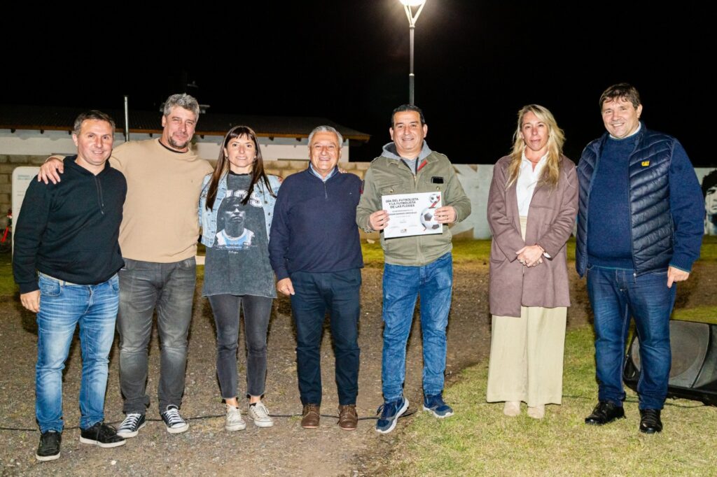 CÁLIDA Y EMOTIVA CELEBRACIÓN DEL DÍA DEL FUTBOLISTA DE LAS FLORES Y ANIVERSARIO DE LA PLAZOLETA “DIEGO MARADONA” Con buena concurrencia de público, se celebró anoche en nuestra ciudad el cuarto aniversario de la Plazoleta Diego Armando Maradona y el tercer año del ya instituido Día del Futbolista y de la Futbolista de nuestra ciudad. El evento, organizado por la Municipalidad de Las Flores, contó con la presencia de futbolistas de los distintos clubes del futbol oficial de Las Flores, del Futbol Senior y el Futbol Agrario: los jugadores, en su gran mayoría, estuvieron acompañados por dirigentes y entrenadores. También formaron parte del encuentro celebrativo el intendente Alberto Gelené, el presidente del Concejo Deliberante, Fabián Blanstein; concejales y demás funcionarios. Fueron distinguidos: el ex futbolista profesional Cesar Domingo “Mingo” Angelello, los dirigentes de Liga de Fútbol de Las Flores y los miembros de la agrupación “Al Diez Mundial”, una entidad que fue la impulsora de la construcción y posterior instalación del busto que representa la figura de Diego Maradona, emplazado hoy en la plazoleta que lleva su nombre ubicada en la intersección de las avenidas Manuel Venancio Paz y Alfredo Vidal. Recibieron sus diplomas los planteles de todas las categorías de los clubes del futbol oficial, como así también los del fútbol Agrario y fútbol Senior, En el final del acto alusivo, que se destacó por la calidez y emotividad, el músico y cantante Venancio Delgado, junto a Marcelo Pilotto en el teclado, fueron los encargados de cerrar el evento con un hermoso tema del grupo “Las Pastillas del abuelo” que invocó la figura de quien fuera el capitán de la Selección Argentina en México 1986. Los aplausos de la concurrencia al finalizar el encuentro, coronaron el acto celebrativo.