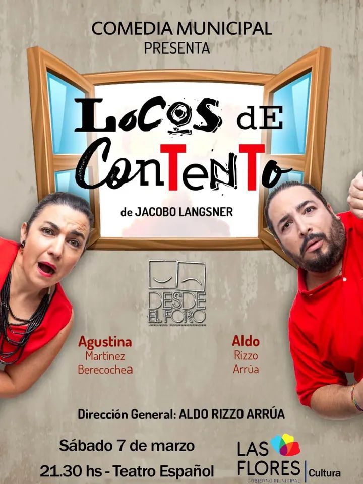 APERTURA DE LA TEMPORADA 2026 DEL TEATRO ESPAÑOL CON LA OBRA DE LA COMEDIA MUNICIPAL “LOCOS DE CONTENTOS” Mañana sábado 7 de marzo a las 21.30 horas se viene la apertura de Temporada 2026 del Teatro Español y será con la obra de la Comedia Municipal «Locos de Contento». La obra es el reflejo de nuestra sociedad, que se repite una y otra vez en la intimidad de cada hogar: el sueño de llegar alguna vez al punto más alto, aunque de vez en cuando perdamos la paciencia y nos gane la desesperanza. Jacobo Langsner (Autor de “Esperando la Carroza”) nos presenta una desopilante pareja argentina que representa lo mejor y lo peor de lo que somos, una mirada autocritica, pero con mucho humor hacia nuestras costumbres.