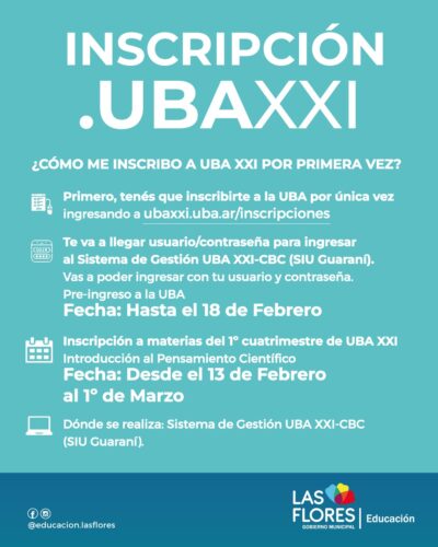 Por informes dirigirse a la Secretaría de Educación y Cultura en Av. Gral Paz y Alem, 1er. piso; WhatsApp 2244-464216; mail educacion@lasflores.gob.ar