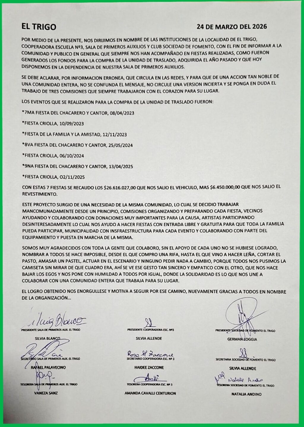 Interés General Locales Carta abierta de la Soc. de Fomento de El Trigo por la compra de la unidad de Traslado 1 minuto de lectura 43 minutos atrás Fm Alpha About The Author Fm Alpha See author's posts