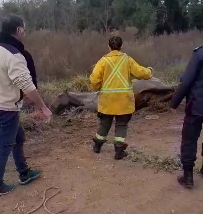 Según vecinos, se piensa que el accidente del equino tuvo lugar hace varias horas, el mismo fue divisado a media...