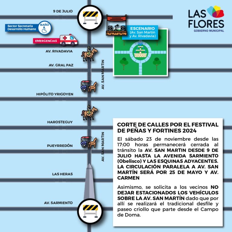 CORTE DE CALLES POR EL FESTIVAL DE PEÑAS Y FORTINES 2024 Se informa que este sábado 23 desde las 17...