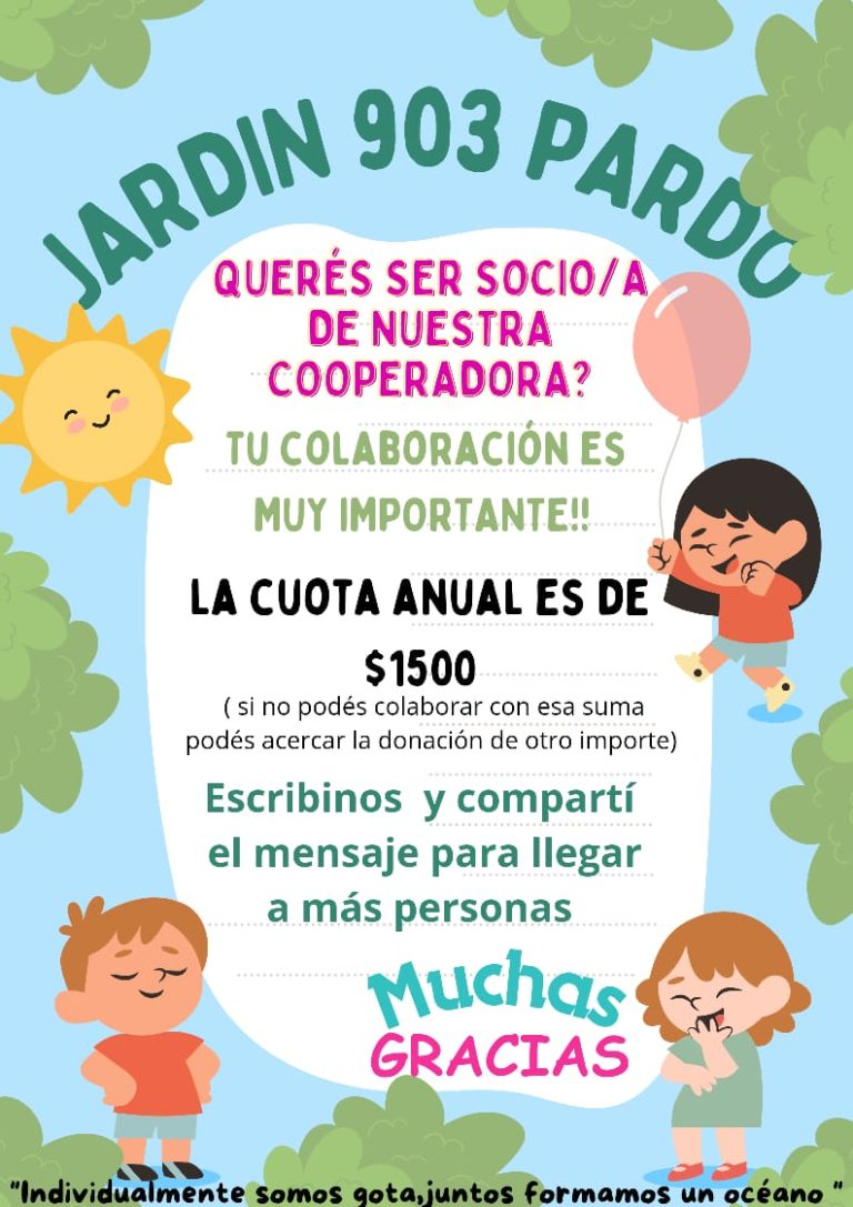 El Jardín de Infantes 903 del paraje rural brinda la posibilidad de asociarse a su Cooperadora. La cuota anual es...