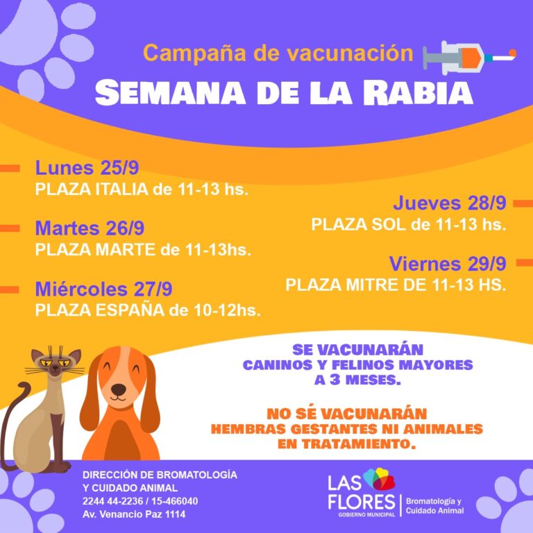 CAMPAÑA DE VACUNACIÓN “SEMANA DE LA RABIA” La Dirección de Bromatología y Cuidado Animal comunica que, durante la semana del...
