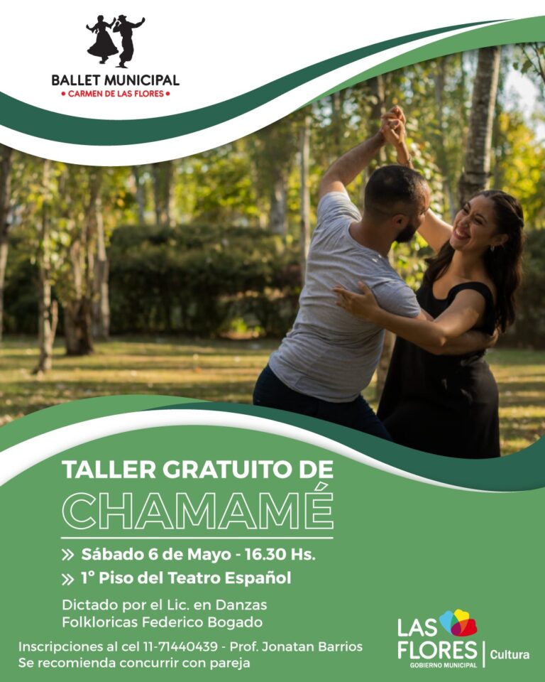 TALLER GRATUITO DE CHAMAMÉ La Secretaría de Cultura, y la Escuela y el Ballet Municipal de Folclore, a cargo del...