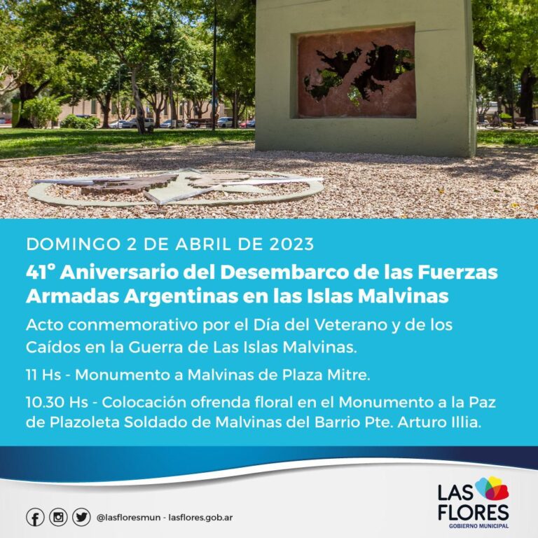 ACTO A 41 AÑOS DE MALVINAS Este domingo 2 de abril se realizará el Acto por el Día del Veterano...
