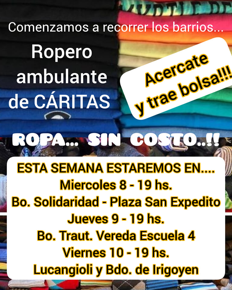 Cáritas Las Flores dará inicio esta semana al ropero ambulante donde se ofrecerá ropa sin costo y en buen estado....