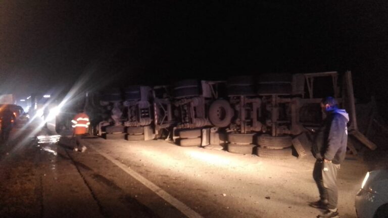 En las primeras horas de este lunes se produjo en el kilómetro 163 un despiste y posterior vuelco de un...