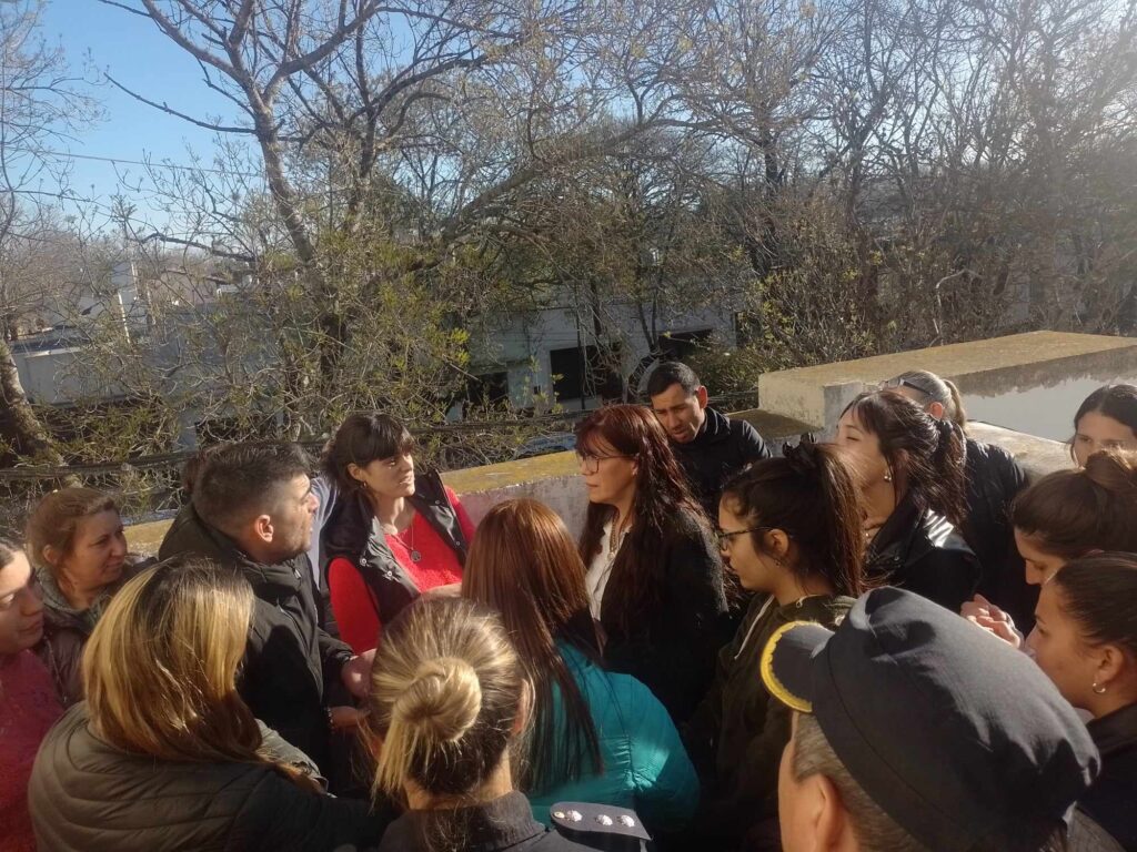 Tal como anunciamos en el día de ayer, con el argumento no negociable por parte de los padres, donde requerían el alejamiento de la institución a la directora y maestra de 5 años como para empezar a calmar las aguas, en el día de la fecha y luego de un cambio de planes sin aviso a los progenitores que la reunión era en otro lugar y sólo con entrevista a la mamá de una de la víctima, los padres comprometidos, más solidarios de otras escuelas en la puerta del jardín, decidieron trasladarse a jefatura ubicada en Bdo. de Irigoyen y Avellaneda -lugar de dicha reunión-. Con custodia policial uniformados y de civil en los altos del edificio donde los padres esperaban la resolución en la terraza y ante la tensión que se vivía y al no recibir respuesta que ratifique lo que se había acordado en el día de ayer, las inspectoras Ana Magno, Alfonsina Ordoñe y llegada desde la localidad de Saladillo la abogada Gabriela Noemí Altamirano del área legal y técnica de la dirección de educación debatían la medida a tomar. La directiva saladillense fue quien puso paños fríos a la tensa jornada al comunicar oficialmente que en la misma se acordó separar del cargo a la directora y maestra de la institución mientras dure el sumario que les compete ante los hechos que manifiestan los padres. Dicha resolución fue aplaudida en el patio superior ante 30 padres aproximadamente mientras otros en la calle seguían la transmisión. También la profesional informó que el sumario continúa y que harán diferentes entrevistas a los padres donde le indicaba colocar todos sus datos con fotocopia del DNI y cámaras Gesell a los distintos niños afectados. Todo esto hará que se tome una resolución definitiva con los educadores afectados por tan delicado tema.