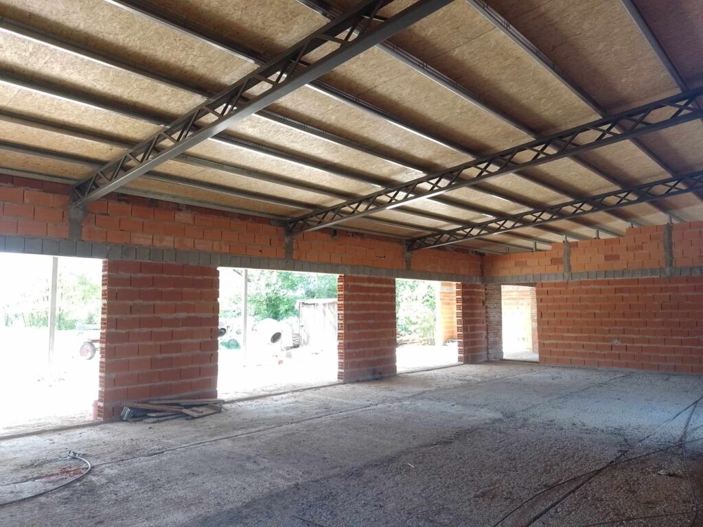 Siguen los trabajos en el predio ubicado sobre Avda. Carramasa y Moreno. En este caso, luego de levantar las paredes y preparar las aberturas, se realizaron las obras de techado de la futura casa. Como se informó en su momento, se proyectan inicialmente dos habitaciones y dos baños con capacidad para ocho personas. Las obras -de 400m2 en una primera etapa- están bajo la supervisión del Arq. Carlos Fuchilla con proyecto ideado por el Arq. Ignacio Chervero.