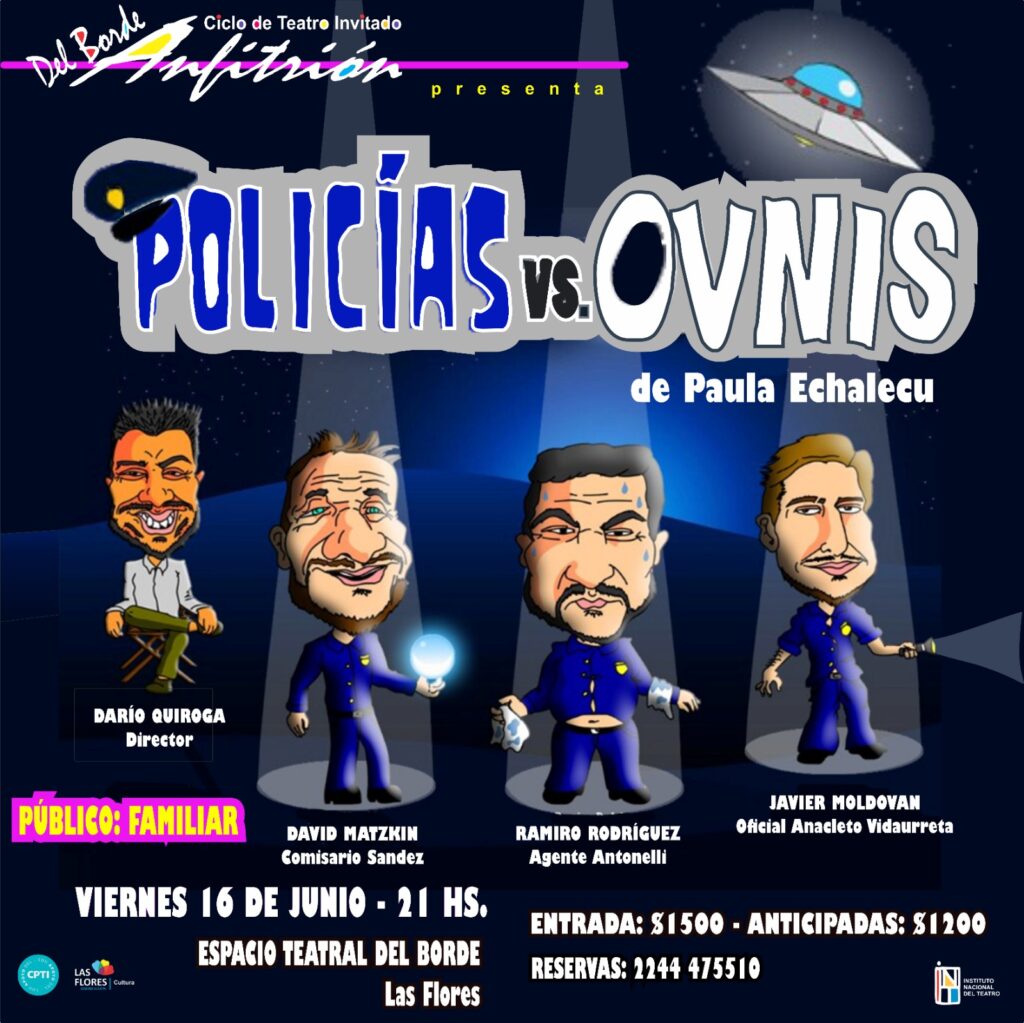 «El encuentro teatral de extraterrestres y miembros de la policía más emblemático de la ovnilogía interestelar». Así lo presentó este lunes a través de una gacetilla de prensa el Espacio Teatral «Del Borde» que subirá a escena el viernes 16 de junio. Basada en una historia real ocurrida en Olavarría en octubre de 1963 es considerado uno de los casos de encuentro con extraterrestres más emblemáticos ocurridos en la ovnilogía mundial ya que fue debidamente documentado con el testimonio irrefutable de miembros de la Policía de la Provincia, «Policías versus Ovnis» es una obra teatral escrita por Paula Echalecu que fue premiada en el concurso de obras de humor para la «Fiesta del Cigomático Mayor VI», llevado a cabo en La Pampa durante 2022. Como parte de la premiación, una compañía teatral de Santa Rosa puso en escena el espectáculo y lo presentó en varias oportunidades en aquella provincia.