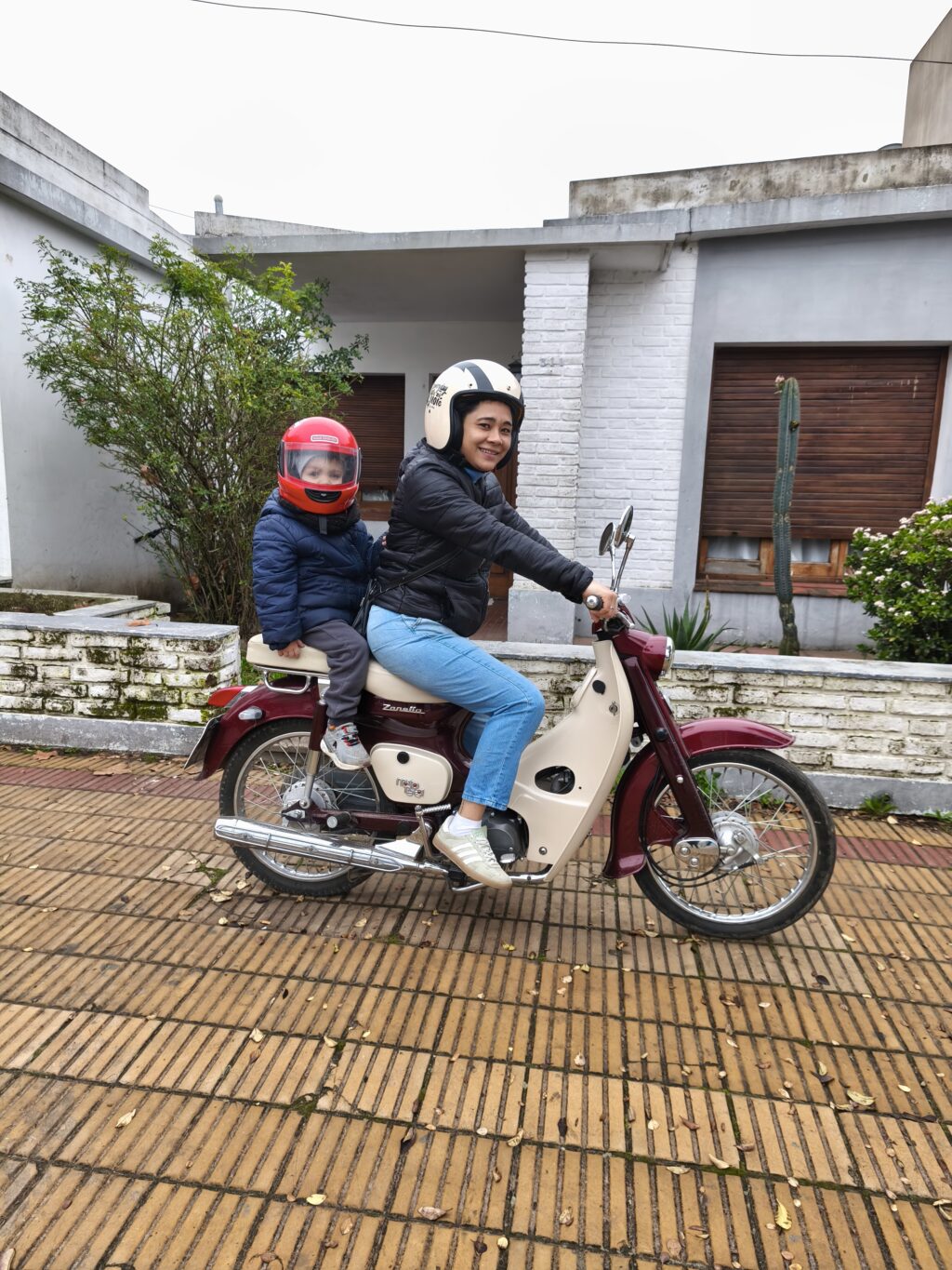 Victoria es una mamá que tiene que trasladar a sus hijos en moto, y si bien no debería ser una novedad o tema periodístico, la realidad que, ante la falta de uso del casco protector, destacamos esta actitud, porque estamos convencidos que quien no lo usa, (pensando de que no le va a pasar nada), se pude especular que poco le interesa su propia vida y la de los que traslada, y si es así, menos será la de terceros. Por esto fomentamos esta imagen esperando que sea contagiosa de las buenas costumbres al deambular en moto por nuestra ciudad.