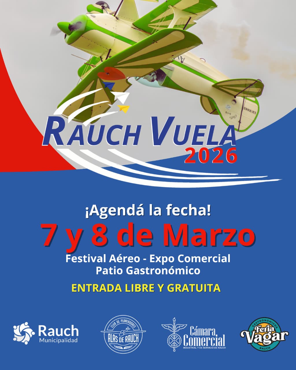 El Club de Planeadores de la vecina localidad, organiza para el 7 y 8 de marzo el gran evento “Rauch Vuela”, un espectáculo que se generó hace unos años y que, en algunos casos, fue proyecto a imitar. El evento, promete una gran muestra con aviones Vintage, y actuales, como así también distintas destrezas con la llegada de los grandes exponentes de la acrobacia aérea. También será una gran muestra de las ONG de la ciudad, empresas con patios de comida y música. Por esto, hablamos con el Pte. de la institución Guillermo Tobías.