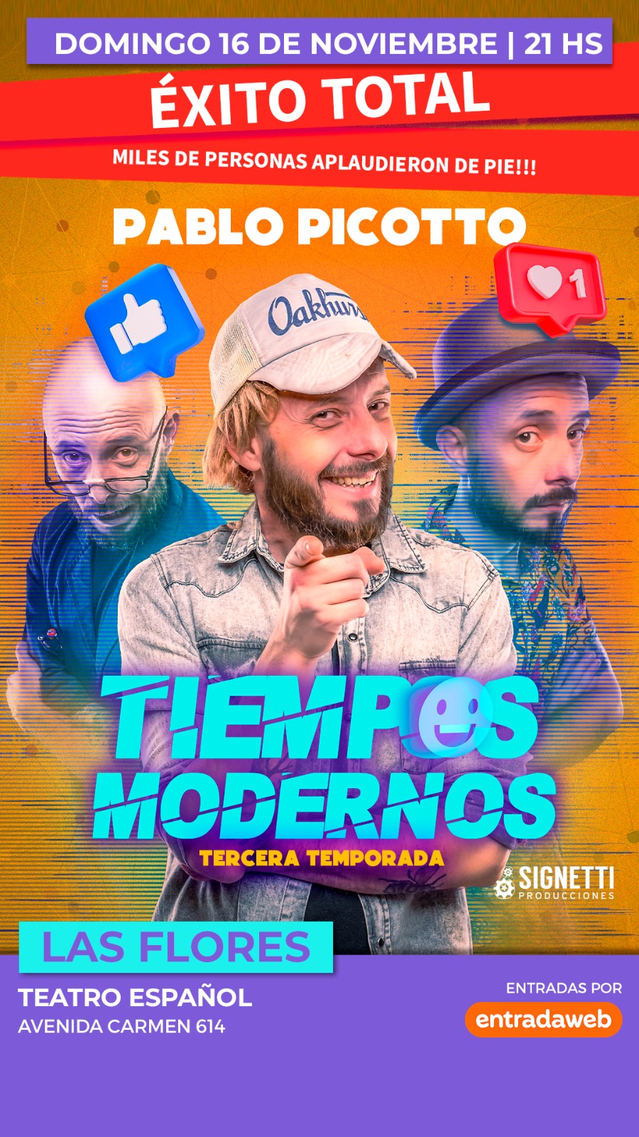 Abordando estos y muchos otros temas con distintos personajes y pasos de comedia stand up, Pablo Picotto entrega su mirada particular dándole protagonismo al humor por sobre todo y por qué no, a alguna que otra reflexión sobre la vida. Un espectáculo para disfrutar y divertirse, para emocionarse con el pasado y pensar para adelante, un show qué hay que ver ahora, antes que se lo quede alguna inteligencia artificial 🙂