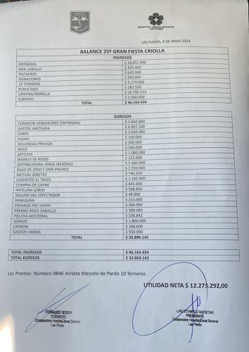 Fiesta Criolla del Hospital: 12 millones de pesos de utilidad neta