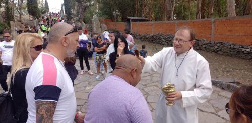 (galería de imágenes) La 91.5 estuvo este viernes en la ciudad serrana que está recibiendo a miles de turistas con motivo del feriado de Semana Santa. Entre los visitantes nos encontramos con un grupo de ciclistas de la ciudad de Azul, cuyo referente, Raúl Castro, contó que «venimos de Azul. Somos 46 integrantes del grupo. Hicimos poco más de 110 kilómetros y vinimos todo por tierra ya que nos queda más cerca y es menos peligroso que por la ruta. Queríamos estar hoy en Tandil para participar del Vía Crucis que es algo muy emocionante. Además el recibimiento de la gente fue muy lindo. Nos aplaudieron y nos felicitaron ni bien llegamos al pie del Cerro El Calvario que es donde estamos ahora». Castro explicó que «somos de hacer viajes durante el año. Hemos ido a Luján también para agradecer y pedir a la Virgen. En lo particular y personal hago esta aventura de llegar hoy porque tengo un hijo fallecido. El me da la fuerza necesaria para realizar estos viajes». El Vía Crucis en Tandil tendrá lugar esta tarde. Además se aprecia un gran número de artesanos y manualistas mientras que hay un gran patio gastronómico.