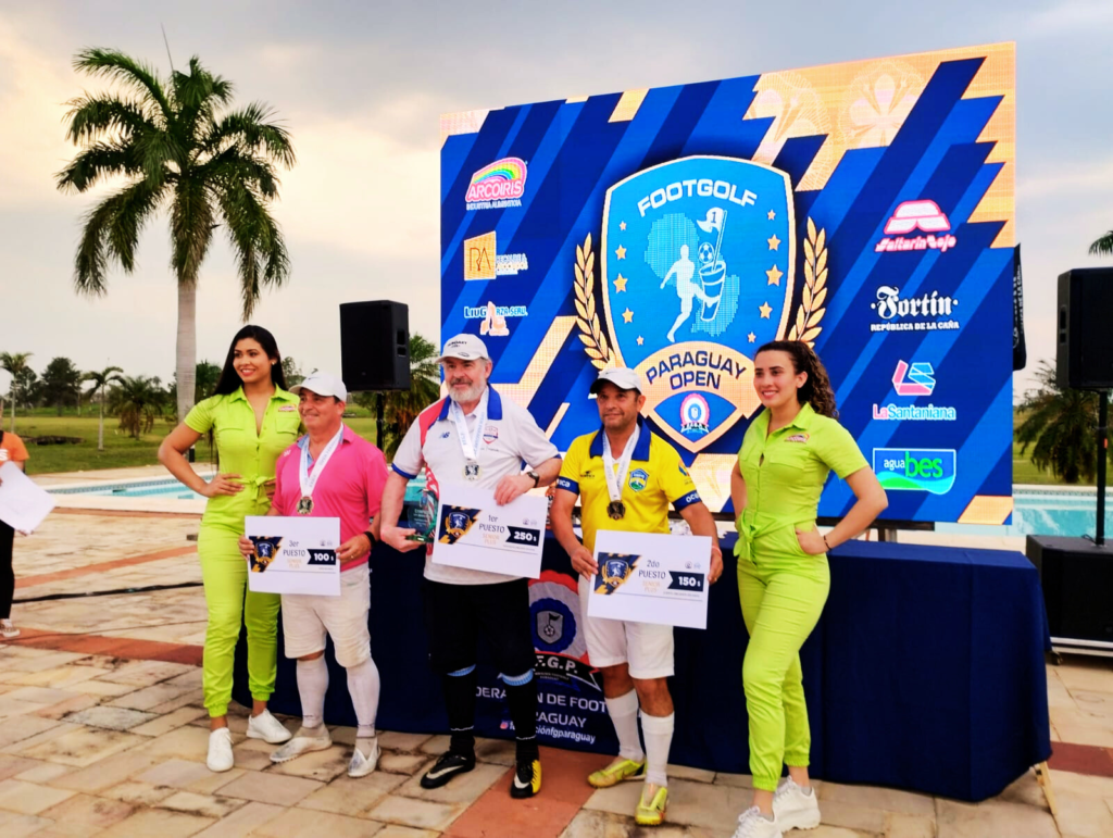 El pasado fin de semana se desarrolló en Asunción (a 1500 km. de nuestra localidad) el “Open de Paraguay” uno de los torneos más importantes del calendario sudamericano de footgolf. El torneo se disputó en el golf de Carlos Franco (famoso golfista paraguayo) en el cual participaron 110 jugadores de Argentina, Chile, Paraguay, Bolivia, Brasil, Uruguay y México. La organización estuvo a la altura de las expectativas y la competencia muy exigente por el clima ventoso de las jornadas del sábado y domingo. Resultados categoría senior +55 día viernes FIFG 100, 1ro Mauricio Juárez 71 golpes (-1) Argentina, 2do Oscar Huntd 73 (+1) Argentina y 3ro Jurides Caldart Brasil 75 golpes (+3). Mauricio hizo “hoyo en uno” en el par 3 del hoyo 6. (VIDEO 1). Resultados del “Open de Paraguay” a 36 hoyos: 1ro Mauricio Juárez 151 golpes (+7), 2do Adilson Barreto 151 golpes (+7) Brasil y 3ro Sergio Ormeño 152 golpes (+8) Argentina. El torneo se definió por “penaltis putt” de una distancia de 5 metros, donde el florense le ganó 5 a 4 al brasileño. El próximo fin de semana se disputarán las fechas 3 y 4 de la Liga Profesional en La Serranita Mar del Plata.