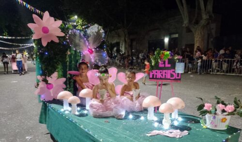 Pasadas las 20 hs. las carrozas y disfraces dieron colorido al trayecto para disfrutar las dos primeras jornadas –de las cinco- de alegría y unión familiar. Más de 20 carrozas entre las que se destacan un submarino que hace un sentido homenaje al Ara San Juan y un helicóptero que recuerda la guerra de Malvinas. Entre los grupos, los más destacados y repetidos son aquellos referidos a la obtención de la copa del mundo de la selección Argentina al ganar Qatar 2022 .