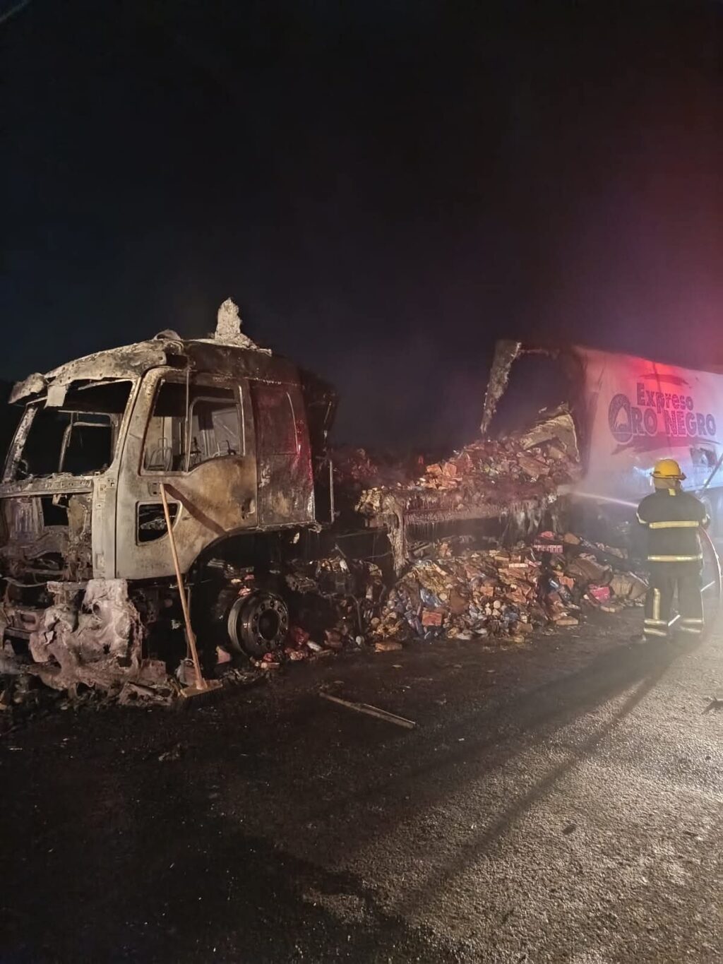 Incendio de un camión motivó ardua labor de Bomberos Voluntarios