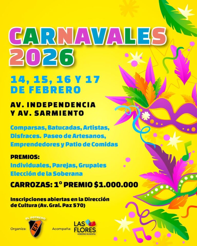 EL SABADO COMIENZAN LOS CARNAVALES 2026 EN LAS FLORES La avenida Independencia entre Pueyrredón y Sarmiento será el lugar donde...