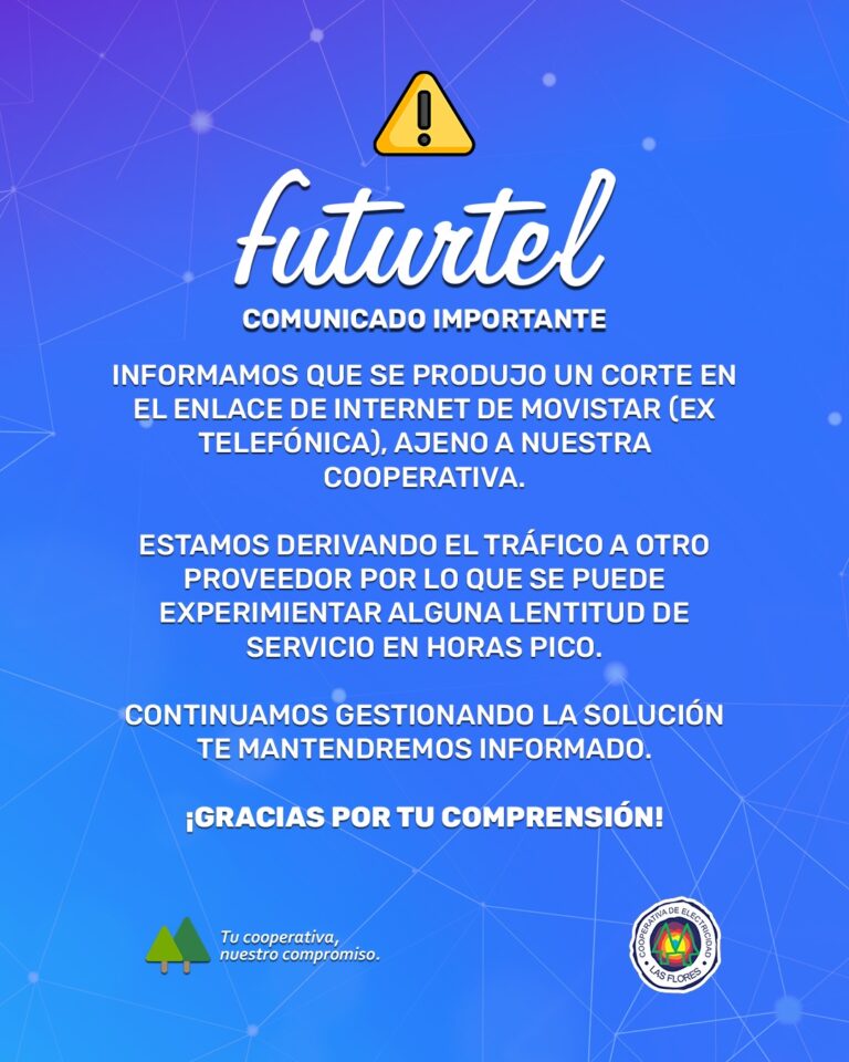 Futurtel informa a sus usuarios que se produjo este sábado un corte en el enlace de Internet de Movistar (ex...
