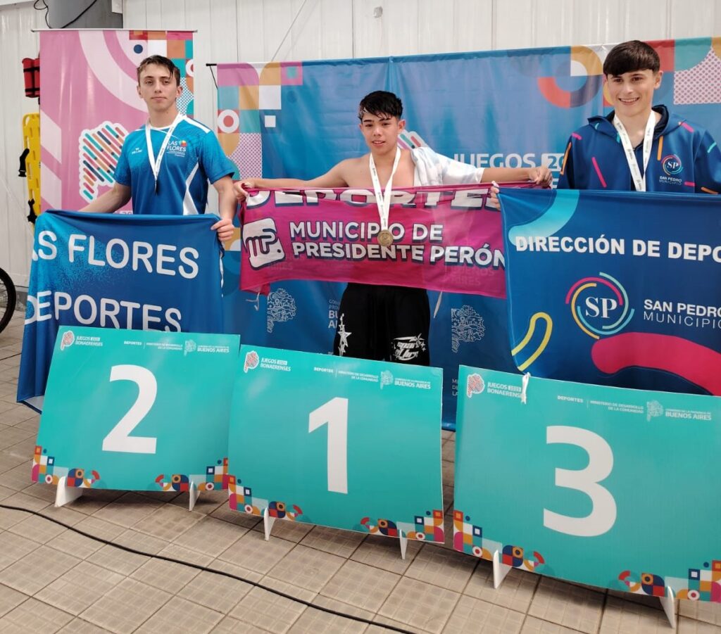 (galería de imágenes) El joven florense se quedó este viernes con el segundo lugar en la prueba 50 metros libres (Sub-16) apenas por una décima del oro. De este modo y con las demás que se sumaron, Las Flores llega a 14 medallas en los Juegos que se desarrollan en Mar del Plata. Por su parte, en un sufrido encuentro, la pareja de Beach Vóley Sub-14 compuesta por Clara Coronel y Juana Vidal (Sub-14) derrotaron 2-1 a las representantes del municipio de Tandil asegurándose la presea de plata. Por la tarde jugaron la final ante Pergamino cayendo en dos sets. Otra gran noticia fue la victoria de Emma Di Tullio y Maitén Giacoia Puente en Pádel Femenino Sub-18 quienes ganaron la semifinal ante Salliqueló por 6-1 y 6-3. Las chicas ya son medalla de plata pero tendrán la posibilidad mañana sábado de cambiarla por la de oro en la gran final. También en Pádel Masculino, Nehuén Giacoia Puente y Simón Rivarola (Sub-14) lograron el pase al partido decisivo por la medalla de oro (ya son plata) al ganar por 6-3 y 6-2. Jugarán mañana sábado a las 9hs. contra la pareja de Gral. Pueyrredón. Siguiendo con esta disciplina, Raúl Rosales y Julio Etcheverry (Adultos Mayores) vencieron 2-6, 6-3 y 10-5 (tiebreak) a Bragado asegurándose la medalla de plata. Mañana sábado jugarán la final. En Natación, Guadalupe Valerio (Sub 14) resultó quinta en 50 metros libre. Restaban disputar sus respectivas finales: Delfina Antonelli Gigena (Sub 16; 100 metros libres) en Sub 14, Gonzalo Onzari (100 metros libre) y Benjamín Lemma González (200 metros libres) y en Adultos Mayores (+60 200 m. libres): José Albarello e Inés Alanís, pero ninguno de ellos, pudieron compartir el podio.