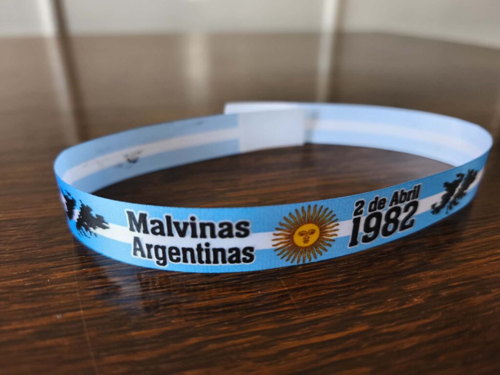 Algunos tal vez hoy se la toma como una simple cinta pulsera, distintivo de identidad para aquellos que sienten a las Islas como propias, pero su valor se enaltece cuando pasa el tiempo, ayer en pleno acto, vimos al veterano de guerra Gustavo Mondini distribuyendo a los abanderados y público en general estas cintas pulseras. Simplemente imaginemos por un momento, cuando un adolescente de hoy les muestre dentro de 50 años a sus nietos diciendo…“esta me le entregó en mano el propio veterano de guerra Gustavo Mondini” Sin dudas, un souvenir que cobrará valor con el paso de los años.