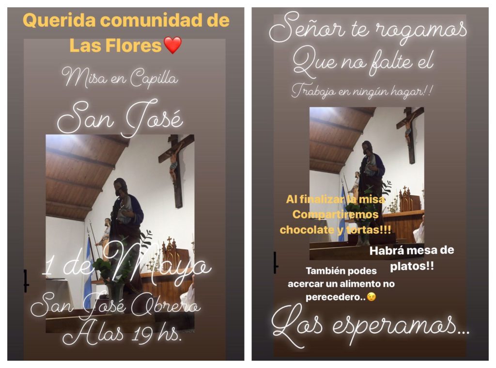 Será este miércoles 1 de mayo a las 19hs. Al finalizar la celebración religiosa habrá mesa de platos y se compartirá chocolate y tortas. También se convoca a colaborar con un alimento no perecedero para ayudar a las familias carenciadas del barrio y aledaños. ¡Los esperamos!.