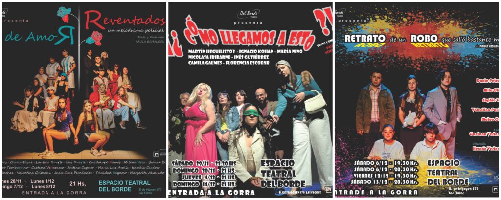 A partir del próximo viernes 28 de noviembre, Del Borde comenzará a presentar sus nuevos trabajos, producidos en los Talleres de Teatro para Preadolescentes, Adolescentes y Adultos 2025. Tres dramaturgias de Paula Echalecu, creadas especialmente para acompañar los procesos creativos de cada grupo, serán estrenadas y puestas en escena, con entradas a la gorra, aptas para todo público, en el Espacio Teatral Del Borde (B. de Irigoyen 570, Las Flores).