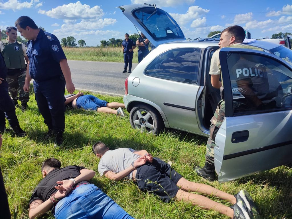 (ver imágenes) En la tarde de este jueves personal de CPR tomó conocimiento a través de una denuncia al 911 de hechos de estafas acaecidos en las ciudades de Tapalqué y Rauch. Por ende se arma un operativo cerrojo a la altura de ruta 91 y Paraje «El Mosquito» logrando dar a los pocos minutos con un automóvil marca Corsa color gris que se estaba dando a la fuga por un camino de tierra. Luego de una persecución se pudo reducir a tres NN masculinos domiciliados en el gran Buenos Aires más precisamente Villa Ballester. Los sujetos fueron reducidos en presencia de un testigo. Poseían en su poder siete teléfonos celulares como así también una suma de 63.200 pesos en efectivo. Los aprehendidos fueron alojados en la sede de Patrulla Rural Las Flores.