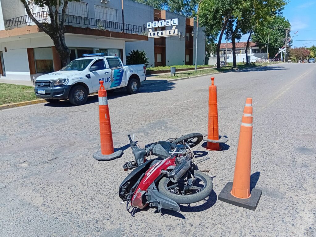 En las primeras horas de la tarde de este jueves se produjo un incidente vial en los semáforos de la mencionada Avenida y su intersección con calle Pellegrini. Según fuentes policiales, el conductor de una moto Yamaha Crypton 110cc. perdió el control por causas que se tratan de establecer ya que, en principio, ningún otro rodado participó del accidente. Intervino SAME quien trasladó al motociclista al Hospital local y Policía Comunal que labró las actuaciones correspondientes.