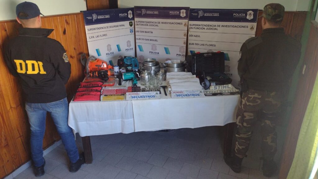 En la mañana de hoy viernes personal de Sub-DDI Las Flores llevó a cabo tres allanamientos en el conurbano bonaerense, más precisamente en las localidades de San Miguel y José C. Paz por el hecho ocurrido el pasado 5 del corriente mes en donde una familia de turistas habían desvalijado dos cabañas del complejo ubicado sobre ruta 3. Según fuentes judiciales, la Sub-Delegación Departamental de Investigaciones en Función Judicial Las Flores llevó a cabo Orden de Allanamiento, Registro y Secuestro, en el marco del Proceso Penal caratulado “AVERIGUACION DE ILICITO”, con intervención de la Ayudantía Fiscal de Las Flores y la Unidad Funcional de Instrucción Nro. 16 a cargo de Dr. Guillermo Vaticano del Departamento Judicial de Azul. Tras denuncia penal realizada el día antes mencionado en sede de la Patrulla Rural de Las Flores, donde el ciudadano Guillermo Martin Suriano, propietario de complejo de cabañas «Aires Campestres», denunció que turistas que se habían alojado en el lugar le habían desvalijado dos cabañas, sustrayéndole gran cantidad de elementos del interior de las mismas. La Sub DDI local se abocó a la investigación del ilícito realizando amplias tareas de campo, análisis fílmicos de cámara pertenecientes a Monitoreo Municipal y particulares, testimonios recepcionados, coordinadas por la Fiscalía Actuante logrando recolectar diversas pruebas que indicarían que no sería ajeno al hecho cuatro ciudadano oriundos del conurbano bonaerense, más precisamente de las localidades de San Miguel y José C Paz por lo que el Juzgado de Garantías Nro. 2 a cargo del Dr. Federico Barberena del Departamento Judicial de Azul otorgó Orden de Allanamiento, Registro, Secuestro para una vivienda situada en calle Azcuénaga al 2400 y otra situada en calle San Nicolás al 500 ambas de la localidad de San Miguel y otra casa situada en calle Cacique Coliqueo al 2300 de José C Paz, siendo estas personas de la comunidad gitana, no pudiéndose brindar datos personales debido al estado en que se encuentra la presente investigación. Siendo cumplimentada dicha orden Judicial en horas de la mañana del día de la fecha por personal de Sub DDI Las Flores contando con la Colaboración del Comando de Prevención Rural Las Flores, Comando de Prevención Rural Saladillo, Sub DDI San Miguel y Sub DDI José C Paz, arrojando resultado positivo ya que se procedió al secuestro de gran cantidad de los elementos denunciados por la víctima, como son juegos de cuchillos y tenedores de mesa, cinco ollas de aluminio de diferentes tamaños, dos pavas de aluminio, un hervidor de aluminio, diez toallas de mano, una espátula, cinco vasos de vidrio, elementos que son de interés para la prosecución de la presente investigación, los cuales serán puestos a disposición de fiscalía interviniente. Como así también se iniciaron actuaciones penales caratuladas “AVERIGUACION DE ILICITO”, con la Intervención de la Unidad Funcional de Instrucción nro. 20 del Departamento Judicial de San Martin debido a que en uno de los domicilios se recogió dos atornilladoras marca Makitta, una motosierra mara Husqvarna, tres desmalezadoras marca Makitta, una amoladora marca Makitta, una pistola de calor marca Husqvarna, stikers de diferentes marcas y tamaños (Dewalt, makitta, Sthil), objeto que no poseían ningún tipo de documentación respaldatoria siendo de dudosa procedencia, quedando todos estos elementos a Disposición de la Unidad Funcional de San Martin.