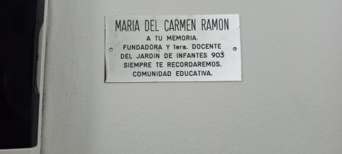 «todo el mundo quiere ser reconocido, entonces si que consideras que alguien debe serlo, no lo mantengas en secreto». En torno a este pensamiento, se llevó a cabo en las instalaciones del jardín 903 el acto de descubrimiento de placa recordatoria a la labor y trayectoria de la ex directora recientemente fallecida; Señora María Del Carmen Ramón.