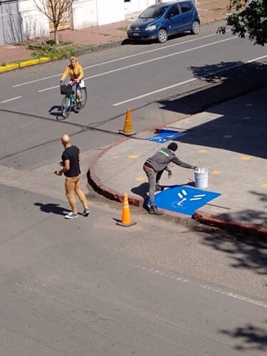 La necesidad de avanzar en mejoras en la señalización urbana para personas con discapacidad -proyecto presentado por el Bloque Adelante/Juntos en anteriores sesiones del HCD- se visibilizó en los últimos días ya que personal de la Dirección de Comunicación Visual del municipio procedió a señalizar rampas de acceso en varias esquinas de la ciudad, entre ellas las ubicadas en Hipólito Irigoyen y 25 de Mayo.