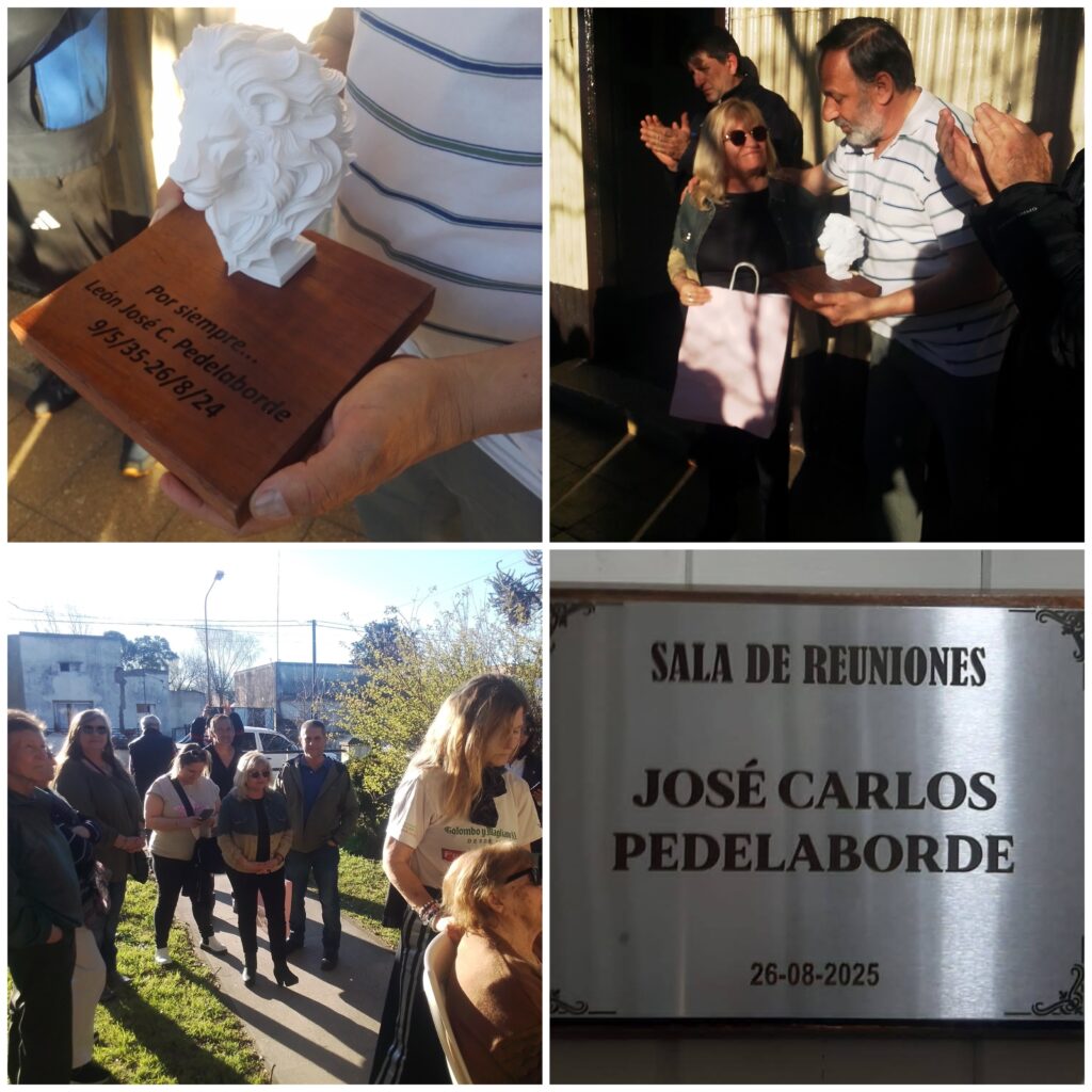 (fotos gentileza Club de Leones) El pasado martes en la sede del Club de Leones de Las Flores (Pellegrini 766) se realizó un sentido homenaje al cumplirse el primer aniversario del fallecimiento del ex León José Carlos «Cacho» Pedelaborde. Con la presencia de familiares, amigos, vecinos e integrantes de la entidad leonística se recordó la figura de quien integró por durante 44 años la entidad. «En su honor y para tenerlo siempre presente entre nosotros hemos distinguido a la sala de reuniones de nuestra sede con su nombre. Como muchos saben, «Cacho» Pedelaborde fue una persona muy servicial desde nuestra institución hacia toda la comunidad», manifestó a la 91.5 Marcos Basoalto, presidente del Club de Leones Las Flores. «Cacho fue una persona súper positiva, muy activa y siempre buscando algo para crear y llevar adelante objetivos en beneficio de la sociedad», expresó luego.