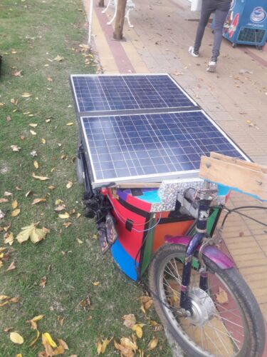 El viajante, tirando solo de su carrito, ya recorrió 26 países a pie, entre ellos, Turquía, Asia, India, Chile, entre otros. Kuno (72) viene desde el sur y está hoy de paso por nuestra ciudad. En su carrito, según relató, guarda sus cosas esenciales que le permiten seguir recorriendo el mundo con poca carga. Entre ellos, una carpa, ropa, agua, zapatos, comida y otros objetos necesarios para sus viajes. Pero además, este carrito cuenta con su propio cargador solar para que el viajero tenga energía y así pueda cargar los elementos electrónicos que necesite, como el celular. Es que justamente en el celular tiene marcadas algunas paradas especiales para hacer, pero duerme donde cae la noche y además, le sirve para traducir las charlas cuando no las entiende. ¡Buena estadía en Las Flores y a seguir viaje amigo!