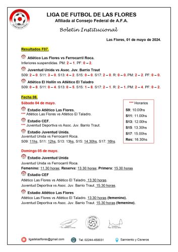 (ver cronograma de partidos) En su habitual reunión semanal la Liga de Fútbol confirmó el programa de partidos para el próximo fin de semana en todas las categorías como así también en el Fútbol Femenino. Será la primera fecha de las revanchas. Se destaca el encuentro que sostendrán en primera división Juventud Deportiva-Barrio Traut (domingo a las 15:30hs. en el Estadio del CEF Nro. 6). La fecha comenzará allí con Atlético-El Taladro (13:30hs.). En tanto que en el estadio de Juventud Unida jugarán desde las 15:30hs. el local ante Ferro. Libre estará El Hollín.