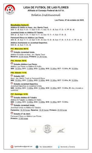 (ver programa completo) En su habitual reunión semanal la Liga de Fútbol dio a conocer el programa de partidos con la novedad que habrá encuentros en días hábiles debido a las continuas suspensiones los fines de semana por las lluvias. De hecho, este miércoles a las 21:30hs. en el estadio de Juventud Unida jugarán en primera división El Hollín-Barrio Traut. También habrá actividad el próximo viernes (feriado trasladable) en el estadio «Orestes Propato» del CEF Nro. como así también en el predio del club Atlético.