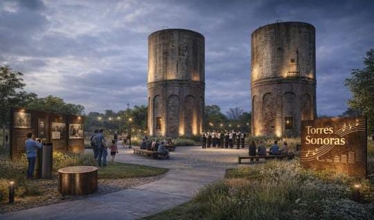 (imagen generada por IA) La 91.5 habló con el Prof. Miguel Polito, director del Coro Polifónico Municipal, quien hizo un balance de la actividad durante el 2025 pero también se refirió a un proyecto que la Inteligencia Artificial tituló como «Torres Sonoras» y consiste en la transformación de los viejos tanques de agua ubicados en inmediaciones de Avda. Avellaneda y Pellegrini, a escasos metros de la Estación del Ferrocarril, en un paseo cultural y turístico. «Ese proyecto lo presenté hace cinco años luego de recorrer otras ciudades y ver la arquitectura de determinados sitios que son patrimoniales pero también se disfrutan como algo turístico», explicó. Más adelante, Polito añadió que «en una de las caminatas que suelo hacer por la ciudad me detuve en esos tanques y pensé por qué no declarar ese sector como patrimonio de la comunidad y monumento histórico y que haya un lugar donde pueda haber expresiones musicales y artísticas, no sólo el Coro».