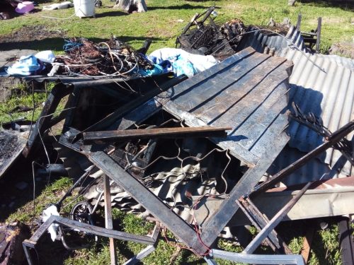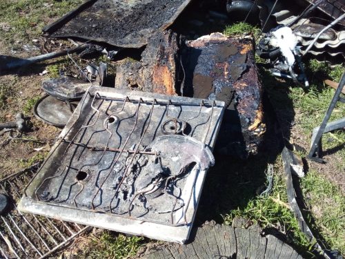 (galería de imágenes y audio entrevista) La 91.5 estuvo con Joaquín, titular de la vivienda ubicada en Pasteur entre Ceretti y Avda. Carramasa que fue devorada íntegramente por las llamas el pasado lunes. «Todo se inició con un cortocircuito en un enchufe de una de las habitaciones. Quedamos casi a oscuras y no sabíamos que había pasado hasta que empecé a sentir olor a humo. Buscando el lugar entramos a una pieza y vimos que se estaba prendiendo fuego un colchón. Fue todo muy rápido», contó. «Intenté con una manguera a través de la bomba que dejó de funcionar enseguida porque era eléctrica. Usamos baldes con agua pero era imposible. Más allá que vinieron los bomberos el fuego nos destruyó todo. No nos queda otra que empezar de vuelta», se lamentó después. Pese al dolor por la pérdida de su casa, Joaquín agradeció la solidaridad de la gente. «Nos están ayudando mucho la verdad. Una familia vecina se ofreció a recolectar lo que nos dan y además vienen personas acá a traernos cosas como ropa, calzado y hasta una cama. Vamos a empezar de nuevo con mi familia». Para comunicarse con Joaquín Cuburú y su familia, pueden comunicarse al 2244-484427.
